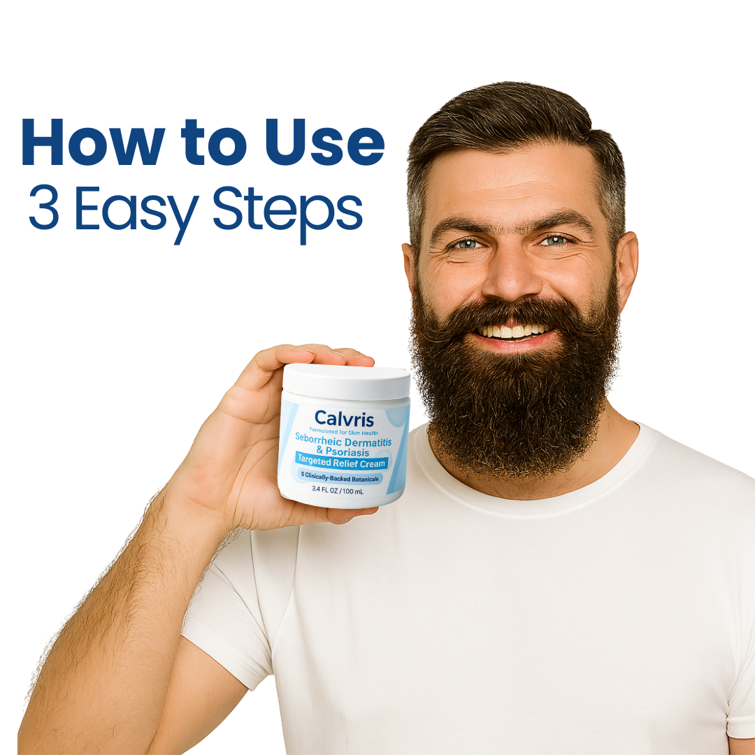 Calvris uses 5 clinically backed natural ingredients that work together to soothe irritation, eliminate flakes, fight fungal overgrowth like Malassezia, and restore your skin barrier, without the use of steroids or harsh chemicals.