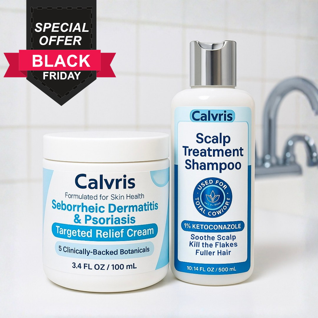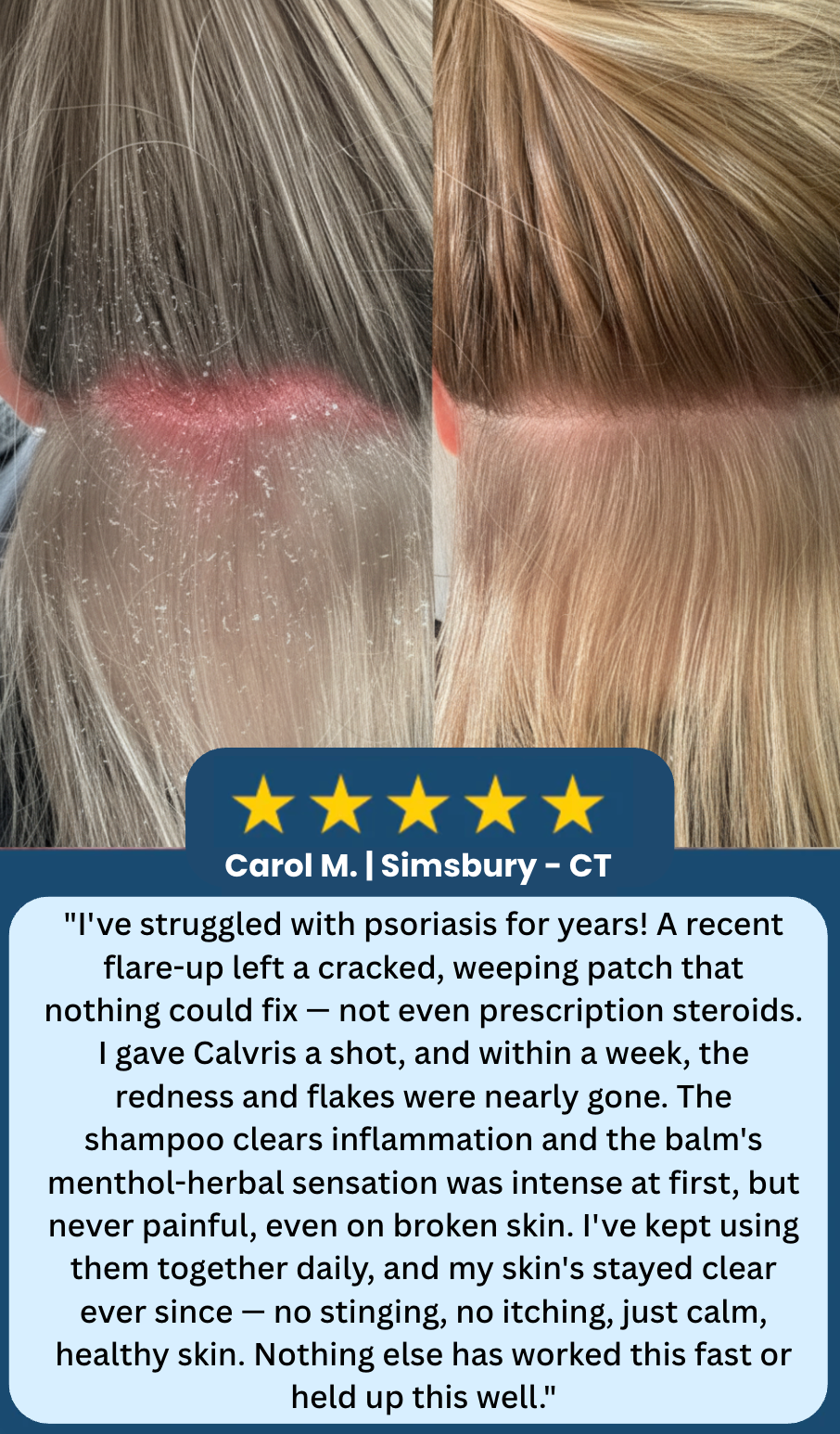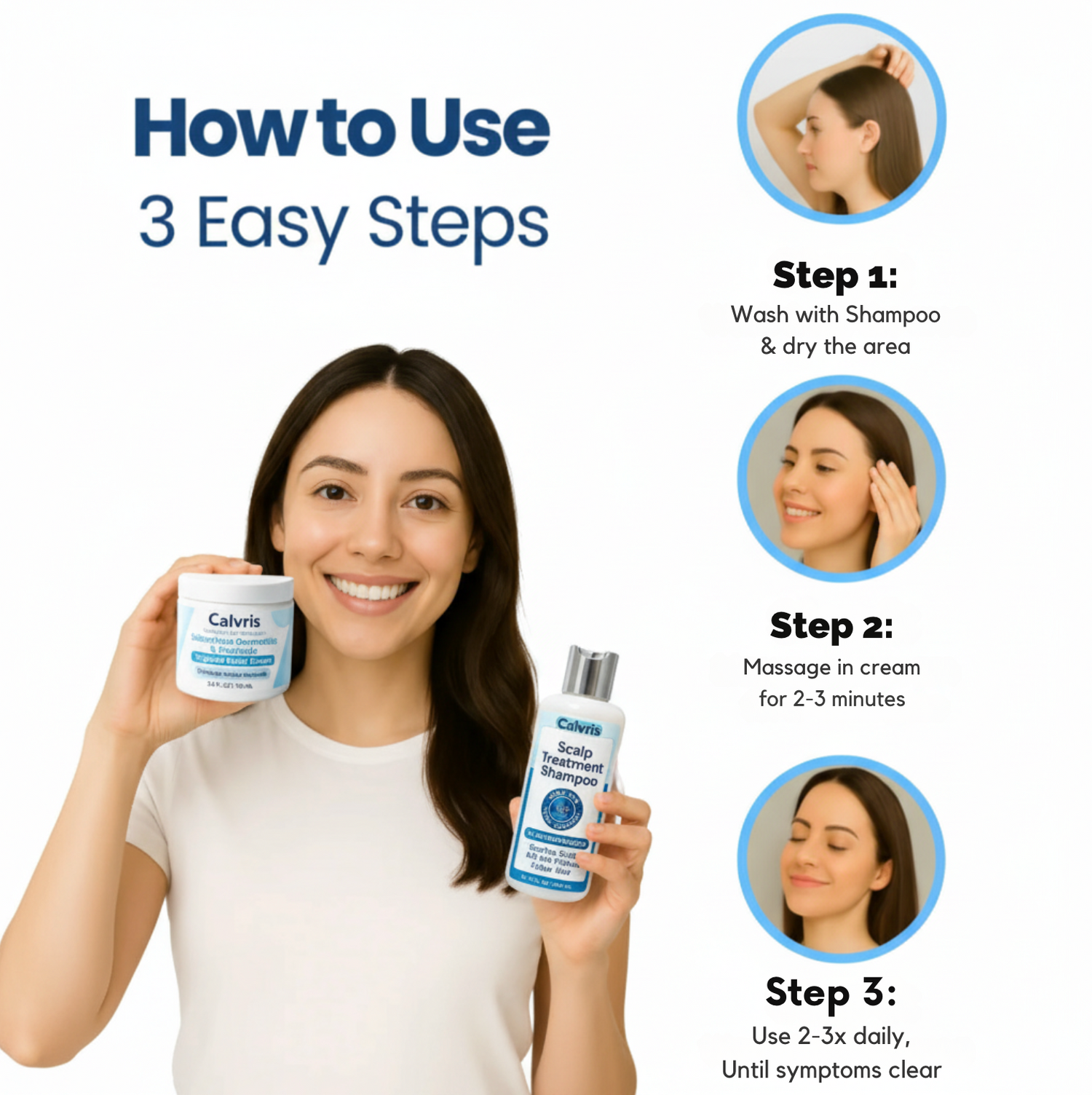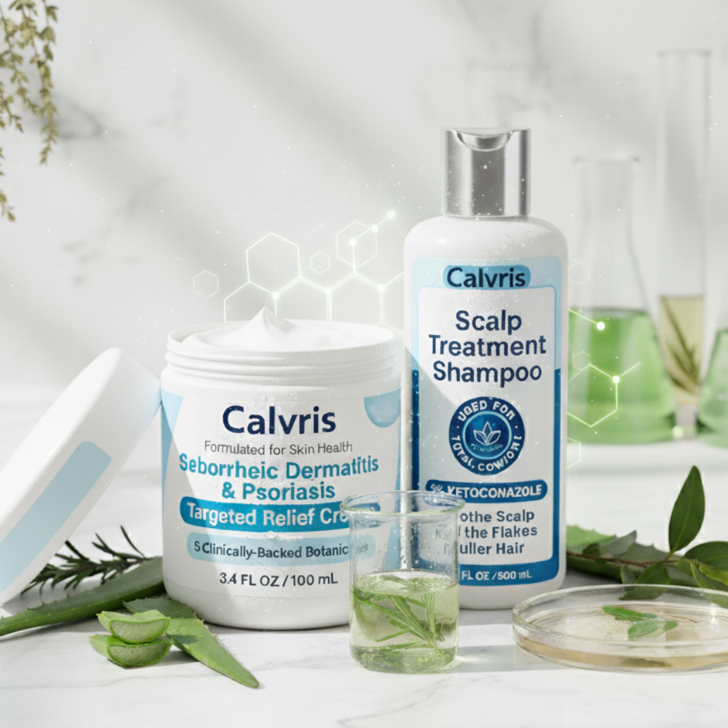This isn't just dry skin. Whether you're battling seborrheic dermatitis, psoriasis, dandruff, or relentless itching, Calvris tackles the root cause — not just the symptoms.