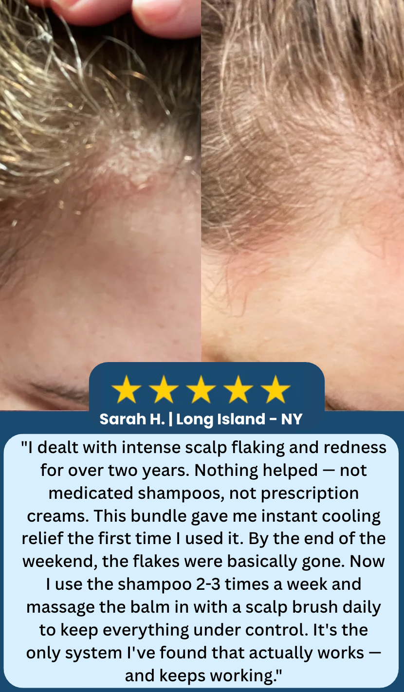 Trusted by over 87,500+ customers, it's the complete system when nothing else works. The shampoo clears the fungus. The balm restores your barrier. No flakes. No burning. Just clear, calm skin.